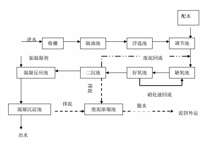 生物處理前的預(yù)處理方法通常是物理和化學(xué)方法,如氣浮法、吹脫法、混凝沉淀法、折點(diǎn)氯化法等,主要目的是使二級(jí)生化處理工藝的進(jìn)水達(dá)到可生化處理的范圍。